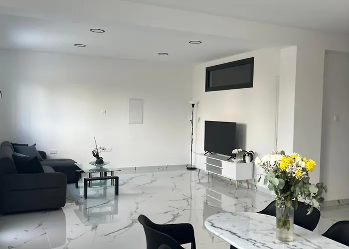 Tento apartmán o rozloze 95 m^2 se nachází 20 km od letiště Mezinarodni letiste Paphos.